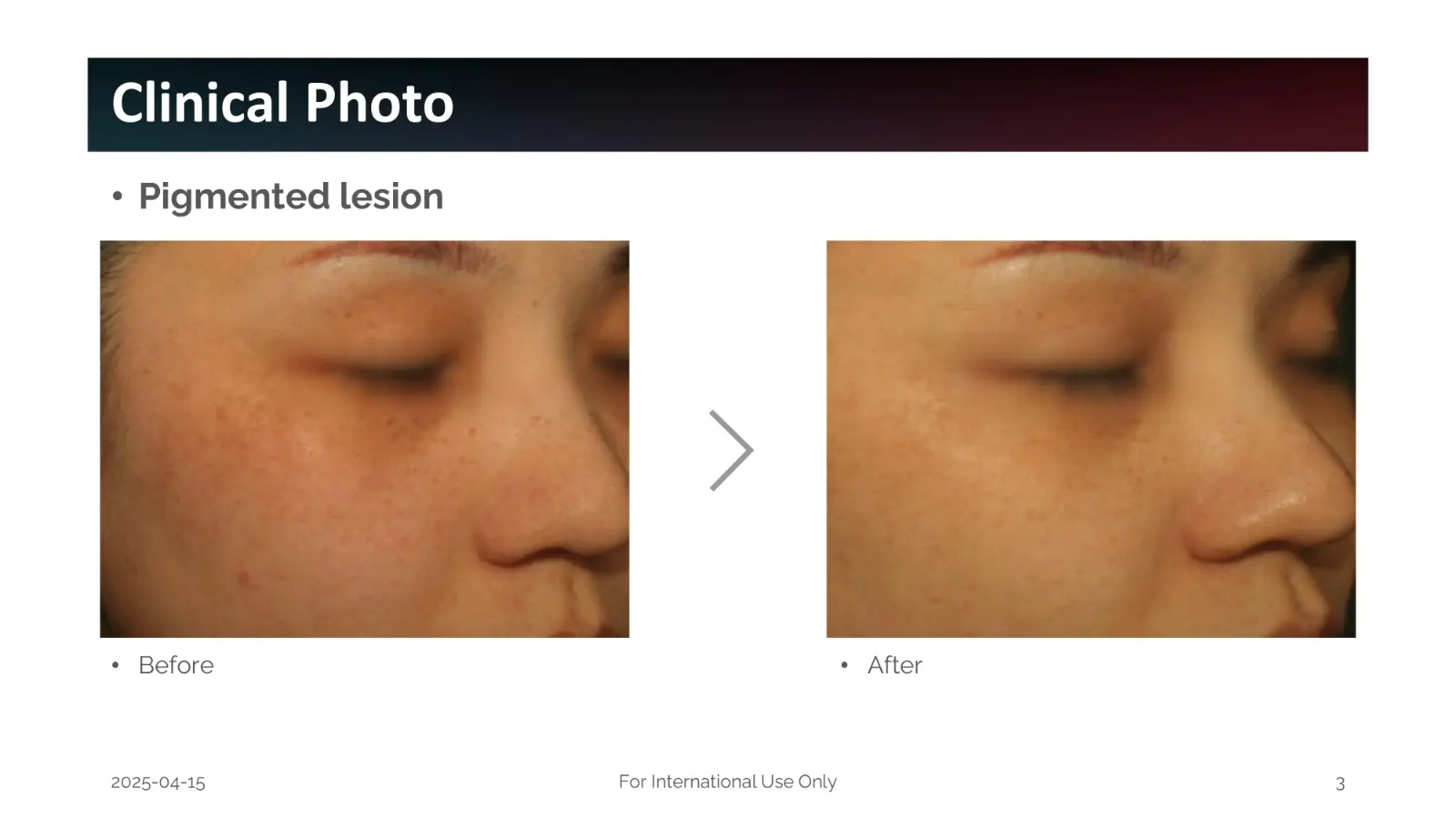 – Per la rimozione delle lesioni pigmentarie dell’epidermide grazie al suo minore assorbimento in melanina e ossicodone e deossi-emoglobina.